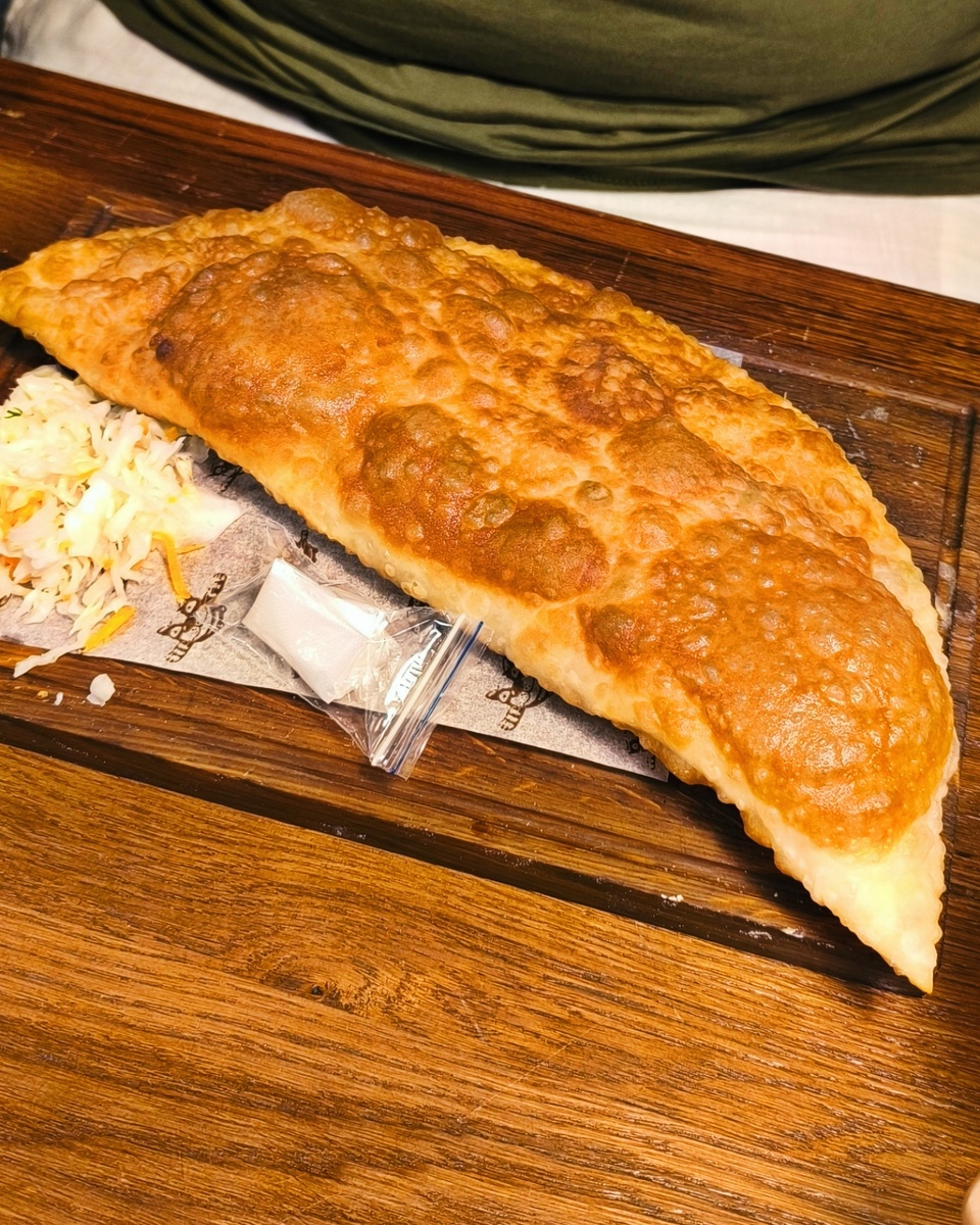 Классические чебуреки и янтыки с бараниной, говядиной и овощами, и они же от шефа с чуть менее тривиальными добавками. Чебуреки классные. Вроде вес указан всего 160 г (примерно от 300 ₽), но выглядят они угрожающе большими.