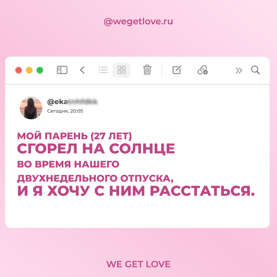 Мой парень (27М) получил сгорел на солнце во время нашего двухнедельного отпуска, и я (26Ж) хочу с ним расстаться.