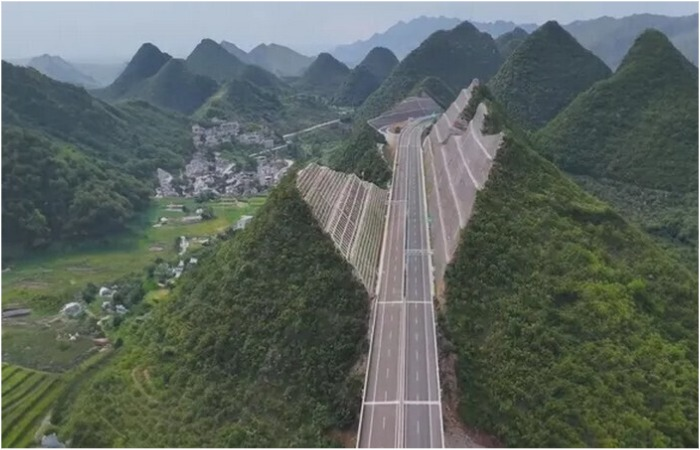 Уж что-что, а сложные задачи китайцы умеют решать креативно и масштабно. Чего стоит одно только изобретение стиральной машинки, работающей на космической станции? Но нет, речь сегодня пойдет не о ней. А о том, для чего китайские инженеры срезали целые горные склоны. Какую задачу они таким образом решали? И оказалась ли идея успешной? Узнаете в этом материале. Провинция Гуйчжоу на 92% покрыта горами и скалами. Она считается одним из самых живописных мест Китая и потому пользуется большой популярностью среди туристов. Но одно дело - любоваться красивым видом, а другое - страдать от низкой транспортной доступности. Все же в местности, где много гор, сложно организовать хорошую дорогу. Для того чтобы повлиять на ситуацию, власти приняли решение о строительстве новой трассы протяженностью около 300 километров. Ее ключевым объектом должен стать огромный мост через каньон Хуацзян высотой 625 метров.