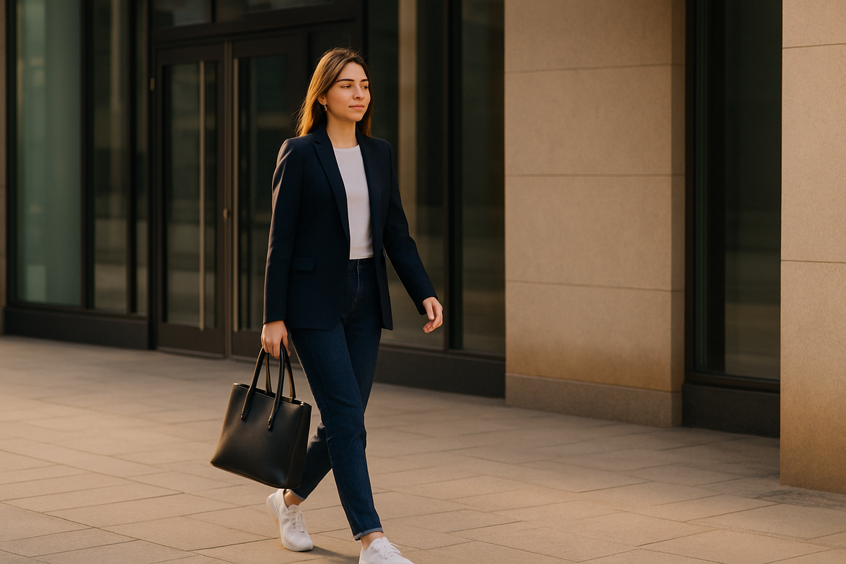 Классический офис стал мягче, но «свобода» не равна «как угодно». Ниже — короткий, практичный гид: какие джинсы и кроссовки уместны в 2025-м, с чем их носить, где заканчивается smart casual и начинается «слишком расслабленно». Плюс 9 готовых формул «на завтра».