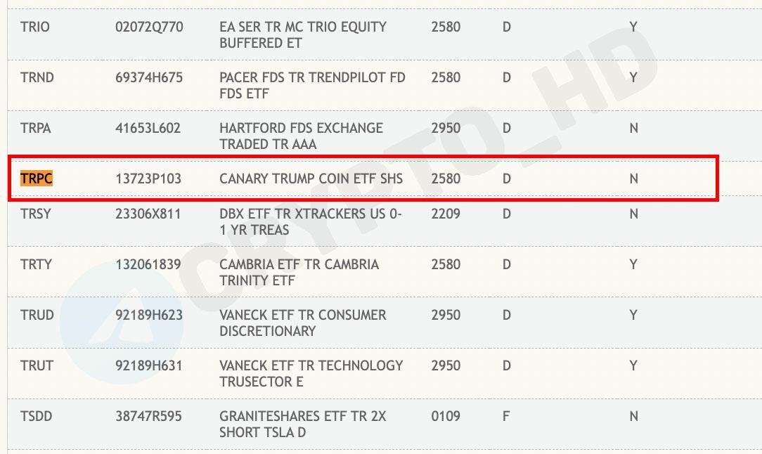 🔥 Тикер Trump Coin ETF (#TRUMP) от Canary Capital появился на сайте DTCC – смотреть