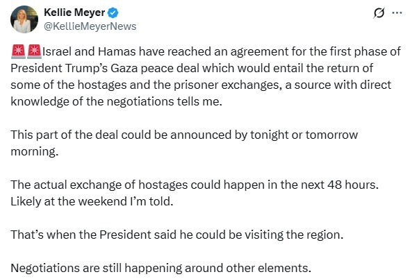 ❗️ Israel and Hamas AGREE to first phase of Trump’s deal – NewsNation Some hostages to be swapped for Palestinian prisoners in next 48 HOURS Further negotiations ongoing