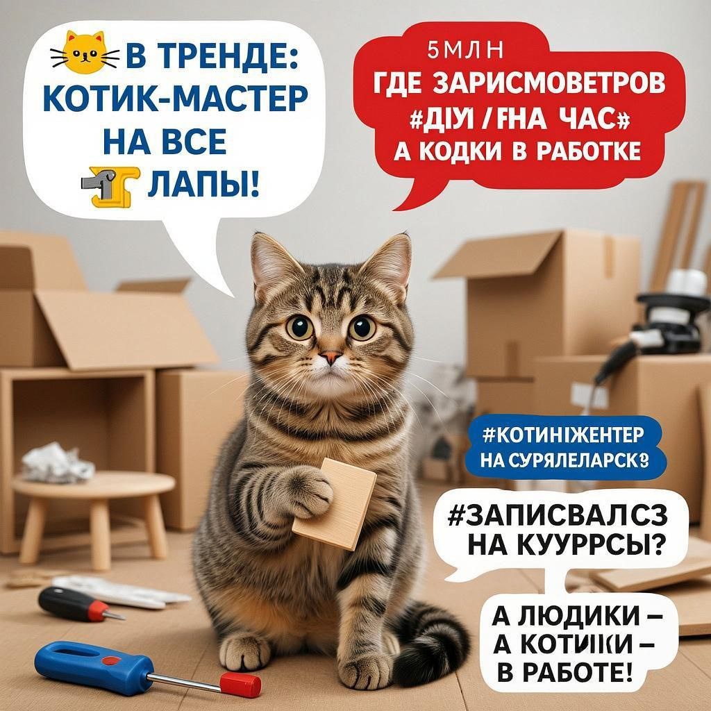 😻 В ТРЕНДЕ: КОТИК-МАСТЕР НА ВСЕ ЛАПЫ! 🛠️ Видео, где пушистый гений собрал мебель ИКЕА без инструкции, взорвало сеть! 🪑⚡ — 5 млн просмотров за час — Комментарии: «Где записывается на курсы?» 🐾 — Хэштег #КотИнженер уже в топе! А ваш питомец умеет что-то необычное? 😼 #ТрендыДня #DIYСюрприз #ГениальныеЛапки P.S. Люди в шоке, а котики — в работе!