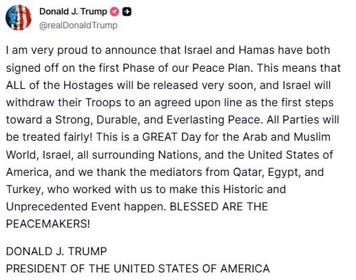 ❗️Trump announces Israel and Hamas have SIGNED OFF on 1st phase of Peace Plan