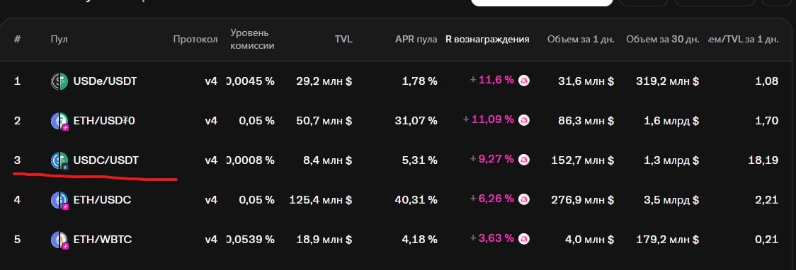 14% APR без риска в пуле ликвидности USDC/USDT сеть арбитрум.