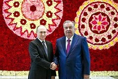 Президент России Владимир Путин прибыл в Таджикистан с трехдневным визитом Марина Совина (ночной редактор) Российский президент Владимир Путин прибыл Таджикистан. В Душанбе глава РФ будет работать ближайшие три дня, пишет ТАСС. Путин прибыл в страну с государственным визитом, где встретится с президентом республики Эмомали Рахмоном. Помимо этого, российский лидер примет участие в саммите «Россия — Центральная Азия» и в заседании Совета глав государств — участников СНГ. Отмечается, что в аэропорту Путина встретил лично президент Рахмон. В честь гостя были подняты государственные флаги России и Таджикистана, а также выстроен почетный караул. Ранее официальный представитель Кремля Дмитрий Песков сообщил, что президенты России и Азербайджана Владимир Путин и Ильхам Алиев обсудят двусторонние отношения РФ и Азербайджана на первой после охлаждения отношений двусторонней встрече в четверг, 9 октября. Источник: Лента ру. Фото: Grigory Sysoev / Reuters