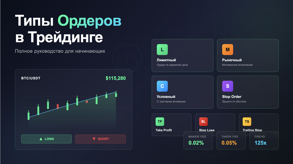 Привет! Сегодня я хочу рассказать вам о типах ордеров в трейдинге. Это очень важная тема, особенно для тех, кто только начинает свой путь в трейдинге. Я буду использовать биржу Bybit в качестве примера, поскольку сам торгую там, но логика интерфейса и типы ордеров одинаковы на всех биржах.