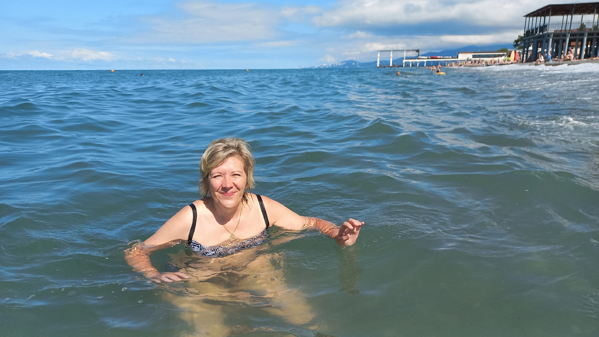 Продолжаю цикл небольших статей про наше замечательное путешествие на море на поезде в Адлер в сезоне 2025. Сегодня 16 часть. После экскурсии в Абхазию, следующий день было решено провести на пляже. Погода с самого утра была замечательная, на небе ни облачка, температура воды комфортная. Отдыхай не хочу! Пляж Лазурь - широкий, без волнорезов, людей утром очень мало. Красота да и только! Небольшие волны накатывают на берег белой пеной, контрастируя с безупречно голубым небом. Не утро, а мечта! Ох, и накупались мы в тот день с Ириной... Много солнца, моря и хорошего настроения. Отдых на море вместе с любимой женщиной, что может быть лучше?! Ролик про это незабываемое утро, уже есть на нашем канале, обязательно посмотрите, получите заряд позитивных эмоций! Получив очередную порцию загара и водных процедур, стали задумываться об обеде. После такого отдыха аппетит зверский, кто отдыхал на море, тот поймёт! Солнце стало жарить невыносимо, пора уходить с пляжа... В этот раз после пляжа загля