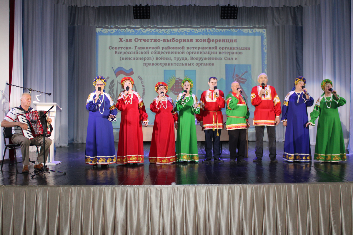 В Районном Доме культуры прошла 10-ая Отчетно-выборная конференция Всероссийской общественной организации ветеранов войны, труда, вооружённых сил и правоохранительных органов. В перерыве между заседаниями, участников конференции порадовали своими выступлениями творческие коллективы Районного Дома культуры и хор ветеранов. В свой адрес они услышали много добрых слов, а также бурю аплодисментов от восторженных зрителей.