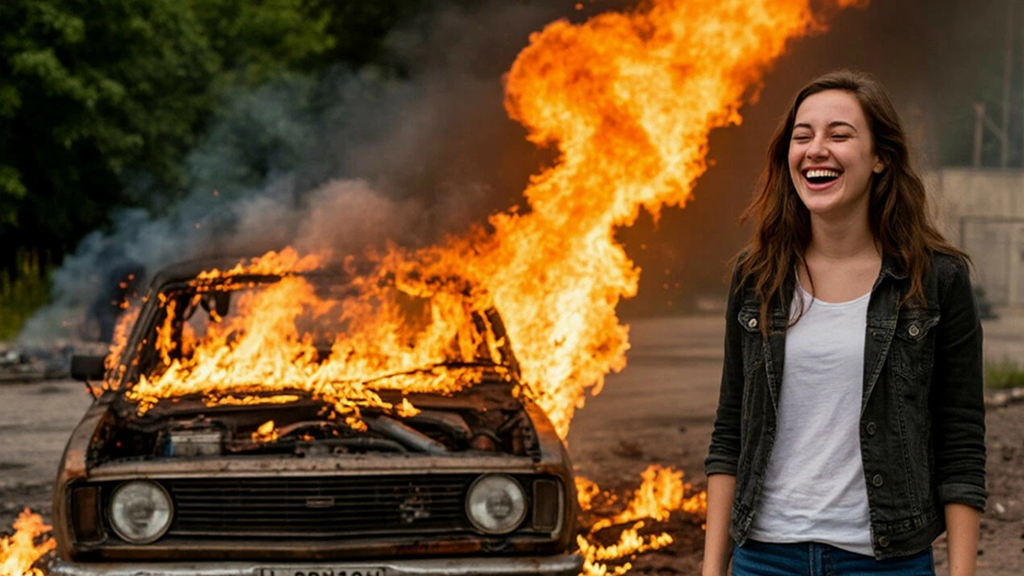 Светлана стояла рядом с машиной, чуть в стороне от огня. Она не кричала, не звала на помощь, не бежала за водой или одеялом. Она… танцевала.