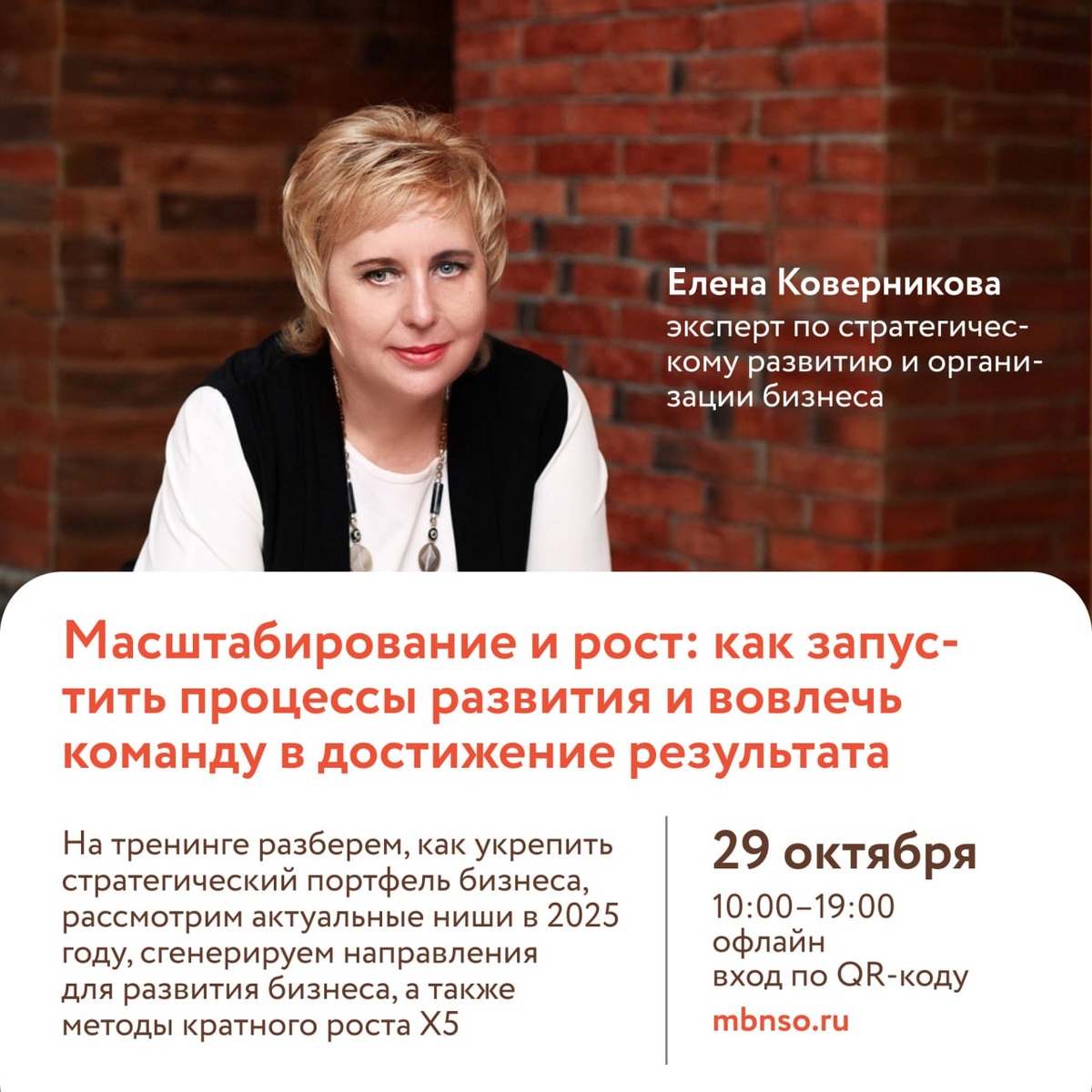 Про экологичный рост и развитие команды говорим 29 октября 🚀 Темы продуктивной среды: → 10:00–19:00: тренинг «Масштабирование и рост: как запустить процессы развития и вовлечь команду в достижение результата» → 15:00–19:00: тренинг «Эффективный отдел продаж: Лидоруб, Хантер, Фермер» Содержательный дайджест на октябрь ✈️@mbnso господдержка бизнеса ✅Связаться с нами написать: ВКонтакте, сайт позвонить: 8 800 600 34 07 #длявсех