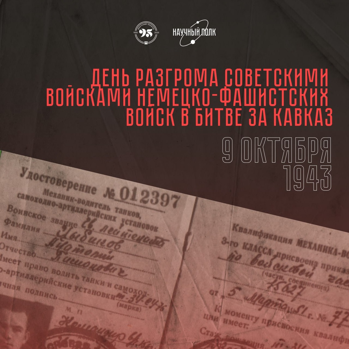 Анатолий Петрович Цыбиков — участник разгрома советскими войсками немецко-фашистских войск в битве за Кавказ 🎖 ⭐️Цыбиков Анатолий Петрович родился 21 декабря 1920 г. в Смоль-Буда Могилевской области. ⭐️Сражался на Северном Кавказе, форсировал Южный Буг, участвовал в Ясско-Кишиневской операции, освобождении Белграда. ⭐️За боевые заслуги был награжден орденами Красной Звезды, Красного Знамени и медалями. Подробности читайте в карточках. #НаучныйПолк #НаучныйПолк2025