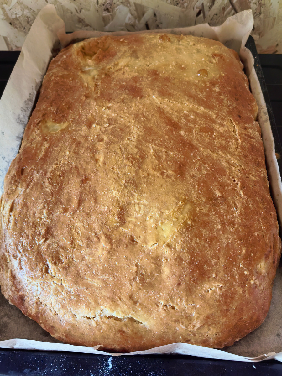 Я очень хотела приготовить хачапури или дагестанскую Чуду с сыром, но у меня дома ремонт и особо долго готовить нет возможности. Поэтому я приготовила этот сырный пирог на кефирном тесте. Можно сказать , что он авторский. * Тесто взято из классического рецепта на Хачаны , а с начинкой я поэкспериментировала и добавила сразу же тви вида сыра. Как Вам пирог? 1 л кефира 1 ч. л соли. 2 ч. л соды. 2 ст. л сахара. Муки нужно столько , чтобы тесто можно было раскатать. Замесить тесто в конце добавить масло сливочное или растительное и хорошо перемешать. Сыр сулугуни 350 гр. Сыр адыгейский 350 гр. Сыр брынза 250 гр. 3 - 4 куриных яйца. Брынзу размять вилкой. Адыгейский сыр и сулугуни потереть на крупной тёрке. * Но можно перемолоть в чаше блендера или через мясорубку. Добавить яйца и все хорошо перемешать. Тесто разделить на две равные части. Раскатать первую часть теста. Выложить на противень . Распределить начинку. Раскатать вторую часть теста. Накрыть тестом начинку. Края защипну