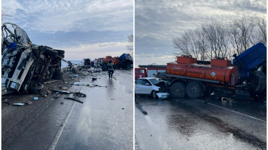 Трагедия произошла утром 25 ноября 2023 года возле поселка Пушкино в Советском районе. Там бензовоз "Урал" выехал на "встречку" и столкнулся с грузовиком Isuzu и легковушкой Volkswagen Polo. В итоге водители обоих грузовых автомобилей погибли.