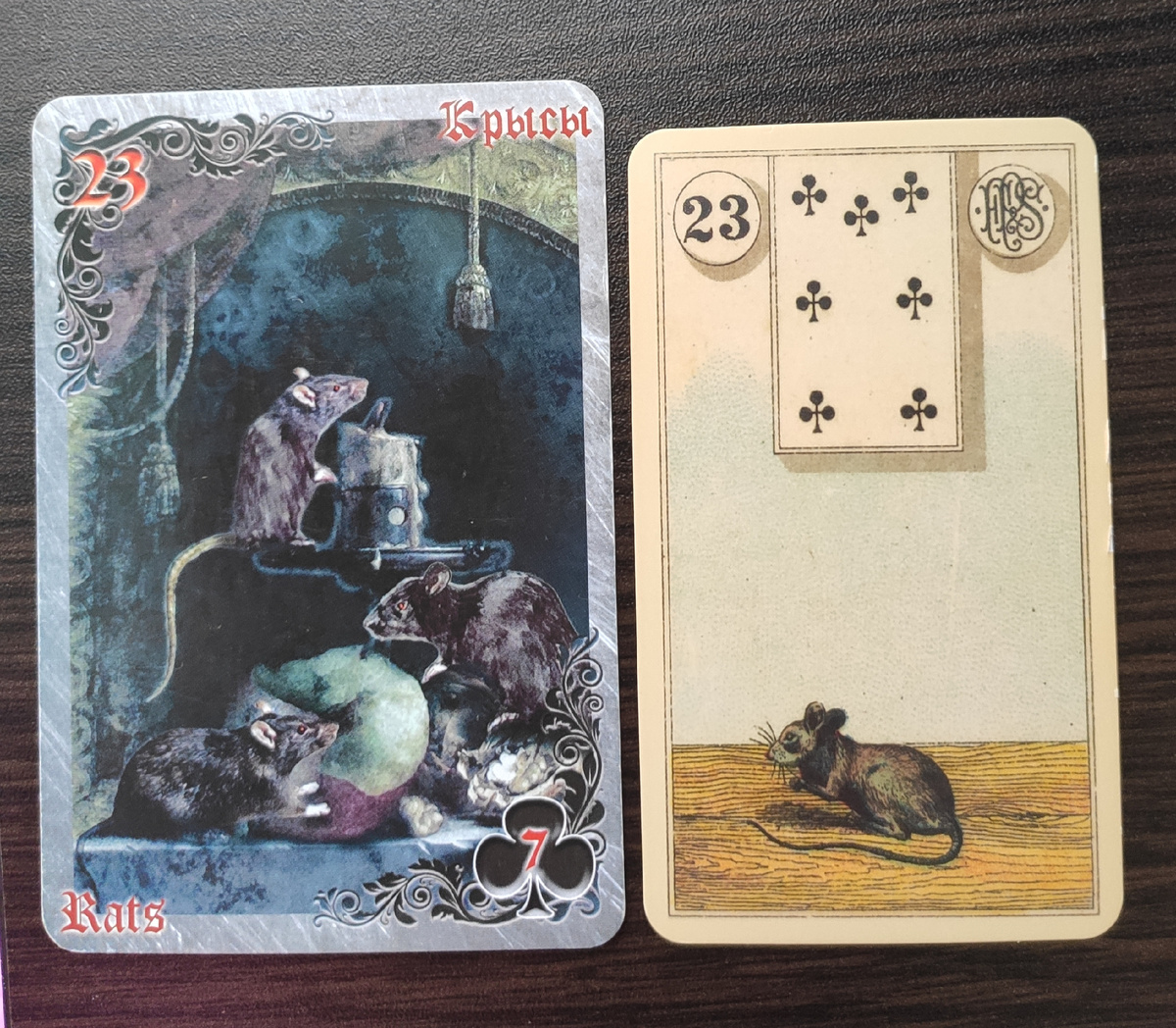 🧿карта КРЫСЫ 👁️ТАЙНА СТАРОГО ЗАМКА колода Ленорман 📌Я буду рассматривать карту и описывать её через собственное восприятие ✍️По желанию присоединяйтесь к описанию карты. 📝Возможно Вы увидите🔎что-то другое... _________ ✍️Карта КРЫСЫ вызывает неприязнь уже с первого взгляда. 👁️ На карте изображены три Крысы, КОТОРЫЕ усердно лазают на столе. Но! прежде чем я начну описывать героев, я всё же рассмотрю помещения в котором они находятся. Сразу бросается в глаза так это свисающие шторы, которые указывают на то, что помещение имеет убранство, поэтому может быть элементарно столовая. На карте изображён стол, который украшен очень красивой...весьма богатой скатертью. За ним не давно сидели и кушали и об этом говорит на половину сгоревшая стоящая посреди стола свеча. И как только свет погас стала темно и тиха...и в это время появляются Крысы. Они орудуют на столе касаясь своими лапами всех продуктов, которые остались на столе. Во всех движения Крыс наблюдается активность через поиск