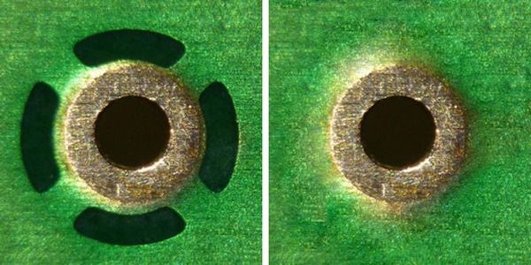 Целесообразность использования термального или прямого подключения для переходных отверстий (via) зависит от технологии изготовления печатных платы и роли этого отверстия. Ключевой фактор – процесс пайки. Рассмотрим подробнее. 1. Прямое подключение (SolidConnection) для Via.