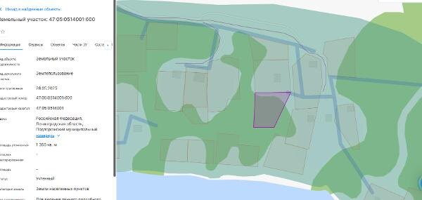 Название: Земельный участок из земель населенных пунктов, с кадастровым номером 47:05:0514001:600, площадью 1350 кв
