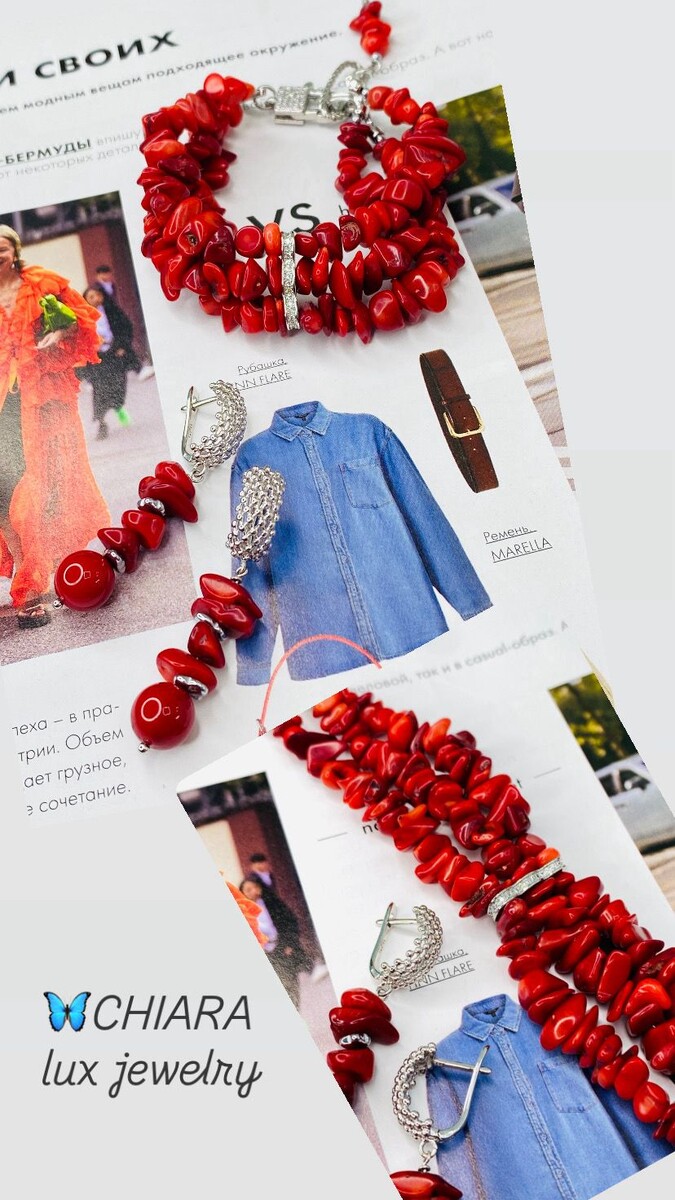 В 2025 году украшения с красным кораллом занимают заметное место в модных тенденциях. Этот камень ценится за свой насыщенный цвет, природное происхождение и способность делать образ ярким и энергичным. · ЭНЕРГИЯ КРАСНОГО ЦВЕТА : Красный коралл символизирует страсть, энергию и женскую силу. Он ассоциируется с любовью и внутренним огнем, помогает привлечь внимание и добавляет образу смелости и решительности. · Сочетание с другими материалами : Коралл часто комбинируют с другими натуральными материалами. Например, встречаются серьги, где красный коралл соседствует с барочным жемчугом и зеленым авантюрином, создавая сложный и очаровательный контраст. 💎 КАК НОСИТЬ УКРАШЕНИЯ С КРАСНЫМ КАРАЛЛОМ Стилисты дают несколько советов, как интегрировать эти яркие украшения в свой гардероб: · Сочетание с одеждой: Чтобы подчеркнуть насыщенный цвет коралла, лучше всего сочетать его с одеждой белых, бежевых или нюдовых оттенков . Такая палитра максимально выгодно оттенит камень, освежит лицо и сделае