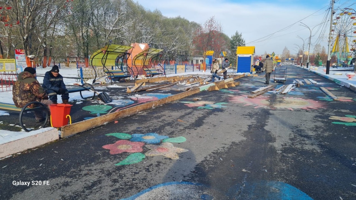 Летний сезон в "Солнечном" завершён. Аттракционы больше не принимают посетителей. Здесь готовятся к зиме. Сотрудники развлекательного центра приступили к монтажу каркаса для будущего катка. Как и в прошлом году, он расположится на пешеходной зоне. ПОДПИШИСЬ 🔴 ПРЕДЛОЖИ Ⓜ МАХ НАШ