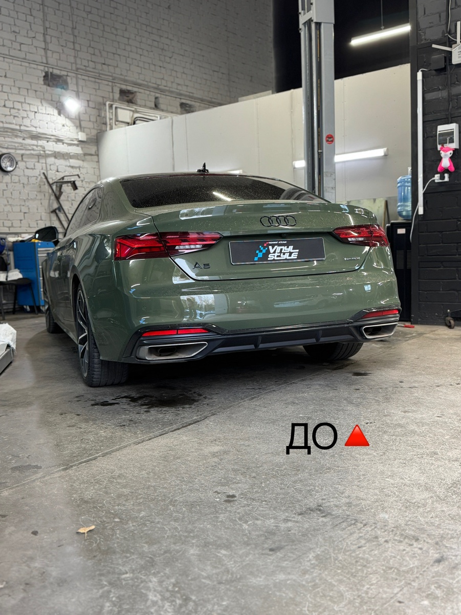 На Audi A5 заменили задний диффузор, установили насадки и сделали управляемый выхлоп на заслонке. Управляется с пульта.