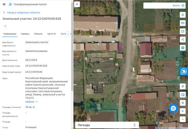 Название: земельный участок из категории земель – земли населенных пунктов, с кадастровым номером 24:22:0401046:828, общей площадью 39