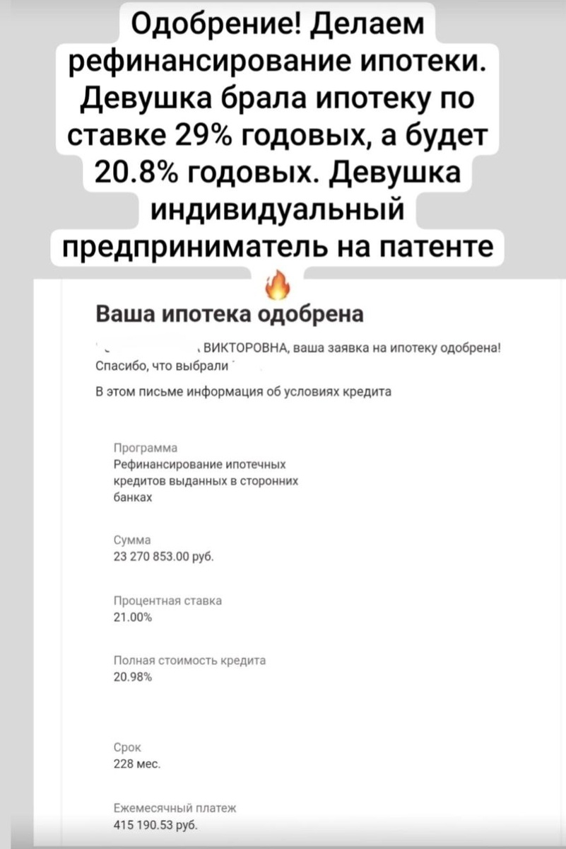 В ответ на пост Кейс: рефинансирование ипотеки для ИП на патенте Часто спрашивают, как получить ипотеку, если ты индивидуальный предприниматель на патенте. Вот реальный кейс: девушка брала зимой ипотеку в Совкомбанке на покупку недвижимости в Сочи под высокую ставку – почти 29% годовых. Сейчас ставки снизились, и задача – уменьшить размер платежа. Основные нюансы: - Сочи с нюансами по объекту недвижимости. - ИП на патенте. - Сумма ипотеки свыше 23 млн рублей. - Совокупная кредитная нагрузка 700 тыс. рублей в месяц. После анализа предложений на рынке было выбрано два банка. Первый банк сначала пообещал, но потом отказал, неправильно посчитав доход. Второй банк, после двух дней размышлений, дал одобрение. Если у вас похожая ситуация, обращайтесь – решим вопрос! Найдём лучшее решение для рефинансирования вашей ипотеки. #ипотека #кредитнаяистория #кредитныйброкер #рефинансирование #недвижимость #Сочи #ИПнапатенте #кредиты
