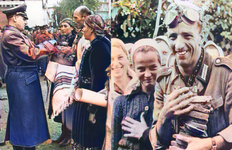 30 июня 1941-го почти без боя вошли немцы и во Львов. Первыми сюда вступили части 1-й горнопехотной дивизии Вермахта и коллаборационистский батальон абвера «Нахтигаль», состоявший преимущественно из этнических украинцев. В городе тут же начался беспощадный Львовский погром... Ну а горожане фашистов с хлебом-солью встречали.
