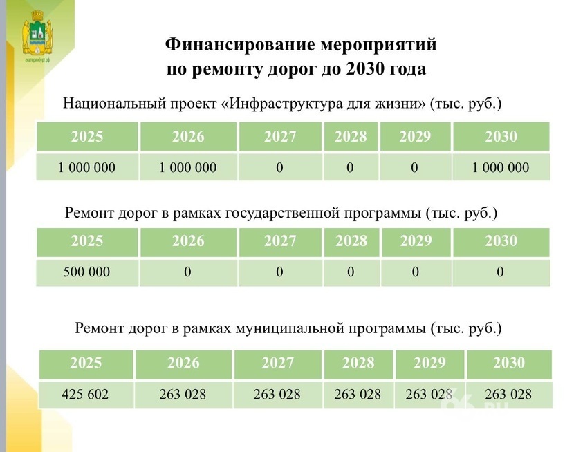 В федеральном бюджете по нацпроекту не заложили деньги на ремонт дорог в регионах на период 2027–2029 годы. Средства не предусмотрели и в госпрограмме «Развитие транспортного комплекса Свердловской области», доложила на заседании коллегии мэрии глава департамента благоустройства Тамара Благодаткова. Мэр Алексей Орлов объяснил, что снижение финансирования произошло во всех регионах. При этом федеральные деньги ежегодно составляют около половины от общей суммы затрат на ремонт дорог в городе. «Это особенность формирования федерального бюджета, определение приоритетов. Сегодня все мы прекрасно понимаем, где нужнее финансовые ресурсы. Поэтому будем у себя какие-то резервы искать, у себя приоритетность определять вместе с коллегами из области, но снижать обороты точно не будем», — рассказал мэр Алексей Орлов. При этом на следующий 2026 год деньги есть. Москва выделила 1 млрд рублей, еще 263 млн рублей — город. Правительство региона сейчас работает над бюджетом области. Алексей Орлов добавил