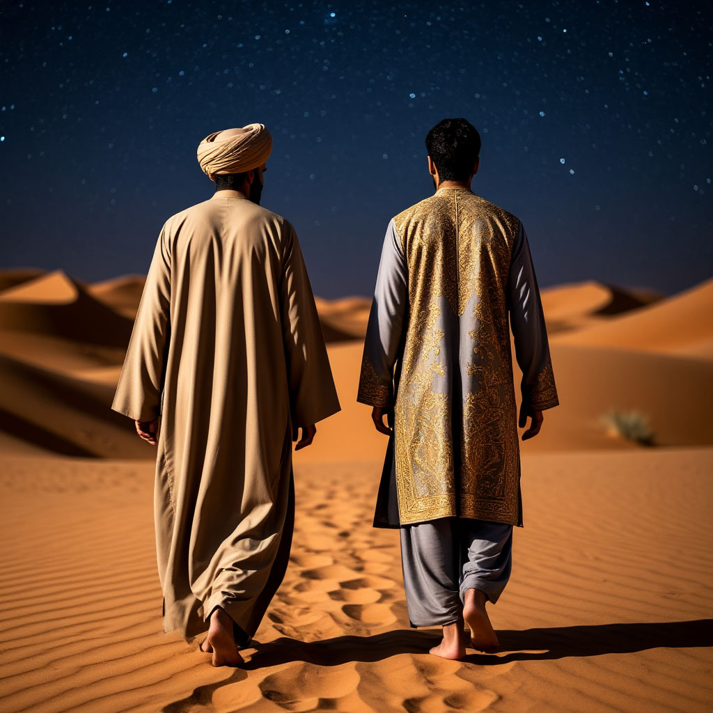 Дервиш был высок и строен, его движения отличались плавностью и грацией, словно он был рождён в гармонии с пустыней. На вид ему было чуть больше тридцати, но в его глазах читалась мудрость, словно он видел и пережил многое.