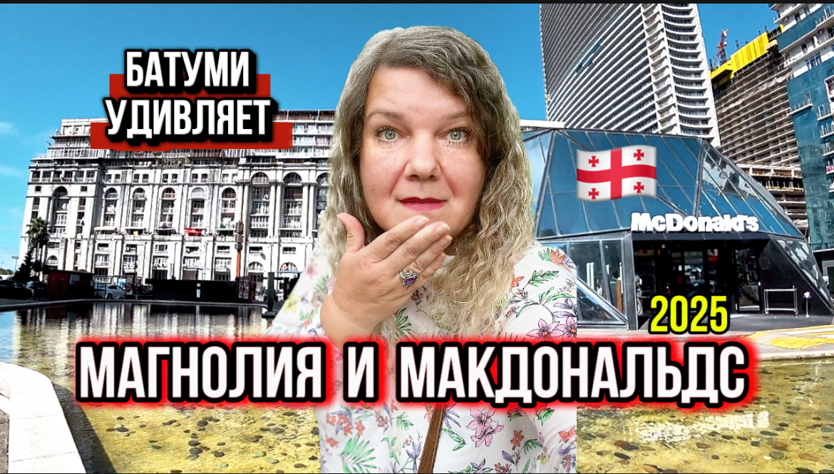 Я люблю гулять по городу так же, как кто-то листает ленту — с чашкой кофе в руке, готовая залипнуть на любую архитектурную драму. В Батуми на одной улице живут сразу два персонажа: один — величественно-обломанный, другой — глянцево-футуристичный. Я позавтракала в стеклянном «космолёте», а потом медленно прошлась вокруг «Магнолии». Получилось смешно, чуть грустно и с комментариями от меня лично. ☀️ Утро. Макдональдс как музей быстрого питания Зашла в «Макдональдс». Заказ: американо + бургер с яйцом и двумя котлетами. Счёт — 13 лари (~400 рублей). Для туриста — чуть выше среднего, но и удовольствия там свои: вид, атмосфера, что ты не на кухне, а в стеклянном павильоне, где свет играет по фасаду. Архитектор Giorgi Khmaladze сделал его как арт-объект: стекло, отражения, зеркальные фасады, свет заливает всё вокруг. Внутри — мягкое утро, кофе дымится, прохожие за окном. Есть утро-шарм, есть ощущение, будто ты в красивой сцене из кино, а не просто в фастфуде. 🏚 «Белая Магнолия»: