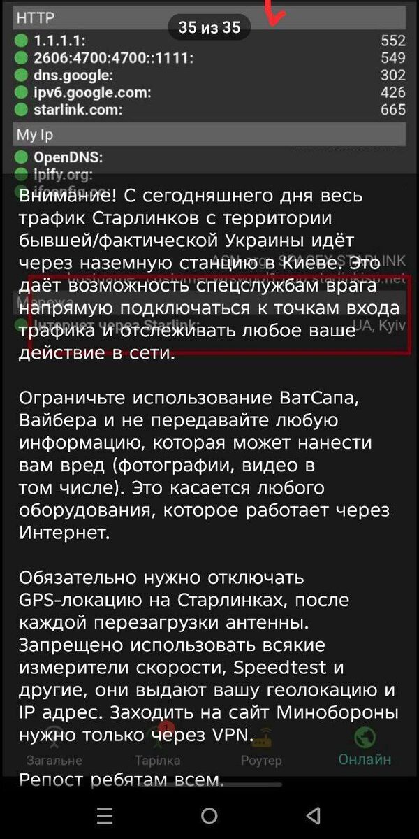 Последние недели в телеграм-каналах, чатах подразделений, в пабликах, посвященных военной тематике, гуляет тревожная, почти паническая волна. Сообщения, подкрепленные скриншотами переписок, предупреждают: «трафик Starlink’ов с территории Украины теперь идет через наземную станцию в Киеве! Это позволяет противнику отслеживать каждое ваше действие! Срочно отключайте GPS, не используйте WhatsApp и Viber, не заходите на сайт Минобороны без VPN!»