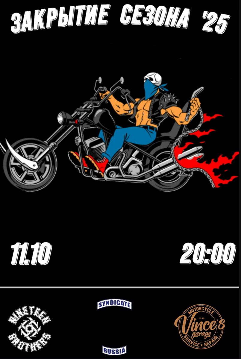 🔁 Дальняк.рф™: Грустишь, глядя на снег? Так приходи на закрытие мотосезона 2025 от любимой вами мастерской Vince’s Garage и клуба Syndicate! Там, в кругу друзей, тепле и уюте, можно вспомнить прошедший сезон и обсудить предстоящий. Тебя ждут южный блюз-рок от группы BLUES'O'BOOZMAN, горячие закуски, бар с демократичными ценами, и конечно же полный арсенал гостеприимства от нашей озорной бригады! 🍻 Сбор с 20:00 в клабхаусе prospect charter Syndicate MC, по адресу Красный Проспект 99к1. 🍻 💣 ВХОД СВОБОДНЫЙ! 💣