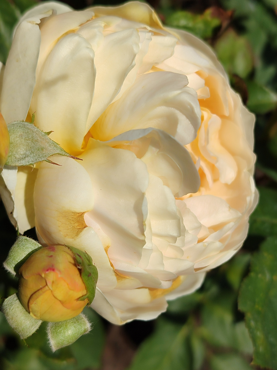 Представьте себе нежнейшие цветки, словно созданные из сливочного масла. В начале сезона бутоны окрашены в нежно-жёлтый цвет с кремовым отливом, который постепенно светлеет, превращаясь в светло-кремовый. Особенно интересно наблюдать, как с возрастом внешние лепестки становятся практически белыми, создавая удивительный цветовой градиент. Я ей даже прощаю веснушки! А как она красиво поникает в реверансе. Чудо!