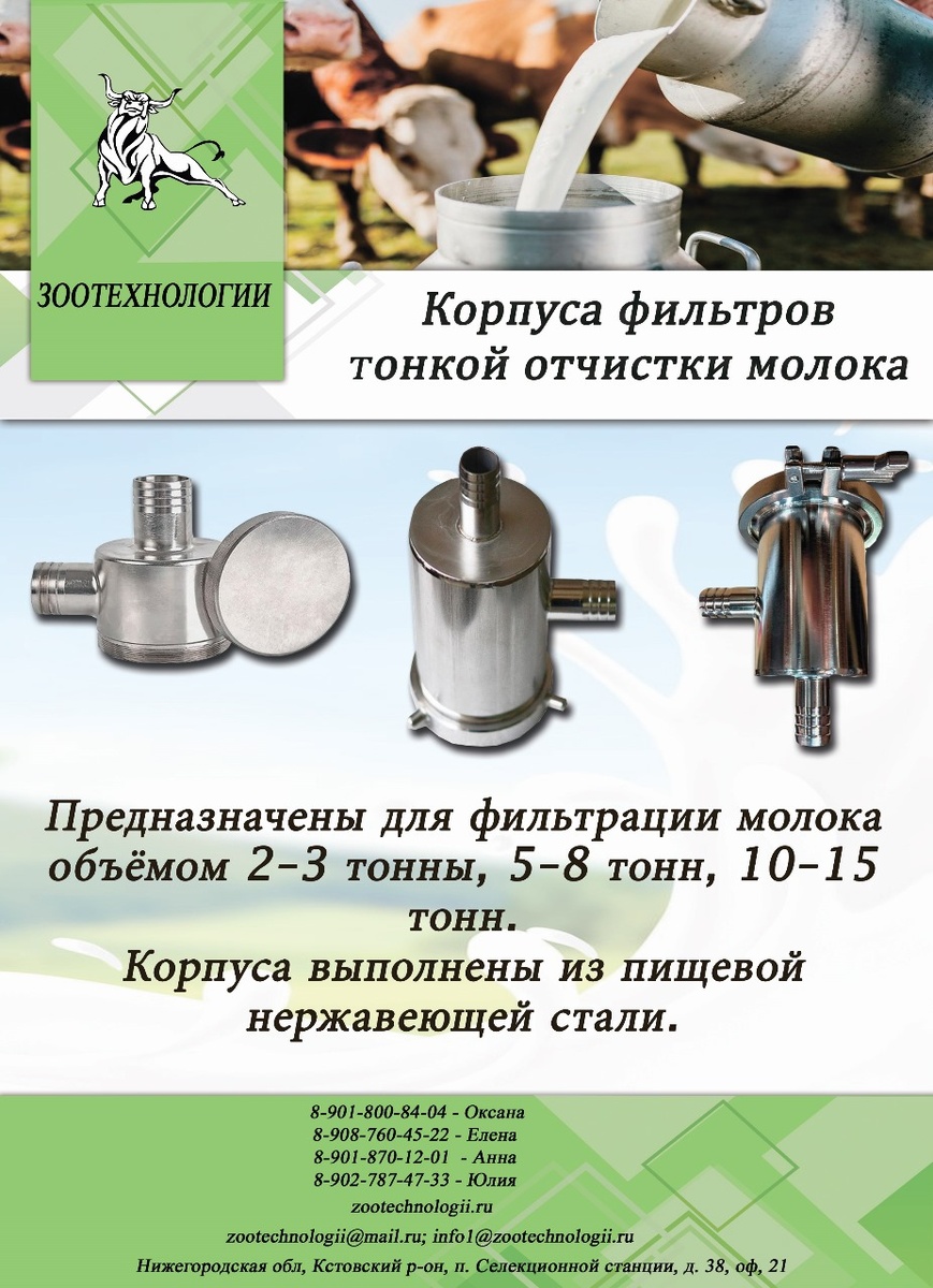 Добрый день. В продаже корпуса фильтров тонкой очистки молока с пропускной способностью 2, 5 и 10 тонн, которые предназначены для очистки молока от механических примесей, продуктов мастита и бактериальной обсеменённости. Это необходимо, чтобы: ✅удалить загрязнения, находящиеся в молоке после дойки; ✅задержать сгустки мастита, которые сокращают в молоке среду для размножения бактерий; ✅снизить бактериальную обсеменённость (до 60%). Корпуса представляют собой колбу с двумя патрубками и крышкой, выполнены из нержавеющей стали. Устанавливаются в молокопровод после насоса до ёмкости для хранения или транспортировки. Корпус фильтра на 2 тонны (размер — 70×60×32 мм) предназначен для очистки молока от механических примесей (до 98%) и продуктов мастита. Некоторые характеристики: ✅максимальная производительность — 300 л/мин; ✅максимальный объём фильтрации до промывки — 2 м³; ✅максимальное давление при перекачке — 25 атм. Корпус фильтра на 5 тонн (размер — 120×60×32 мм) предназначен для оч