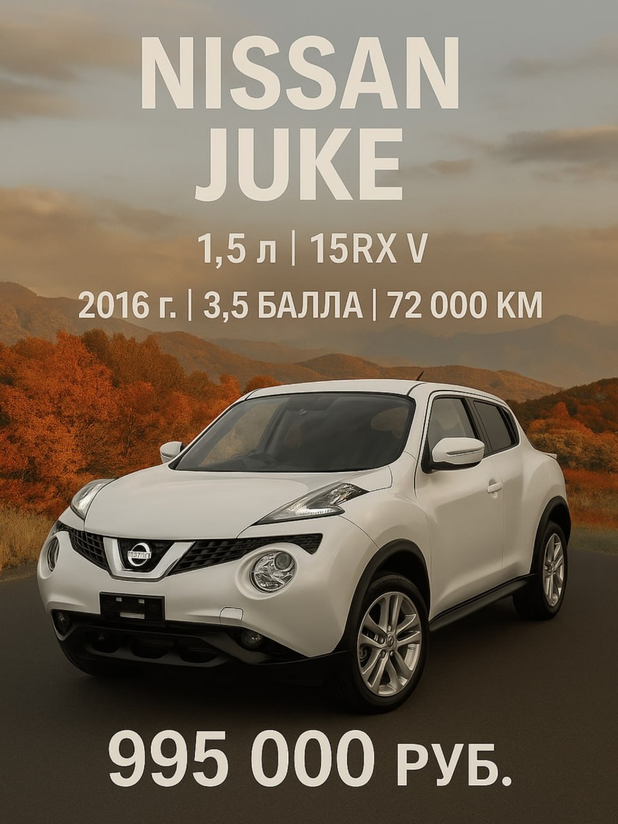 Купили для нашего заказчика 🇯🇵 NISSAN JUKE, 114 л.с. 500 000 йен цена на аукционе 💹 Дата торгов 24.09.2025, курс йены: 0.59 995 000 руб. цена под ключ во Владивостоке Обращайтесь к нашим менеджерам для бесплатной консультации: +7 951 010-52-52 Ярослав Константинович (Япония, Корея) +7 963 515-52-52 Алексей Сергеевич (Китай) Больше фото в комментариях, @noharaautos