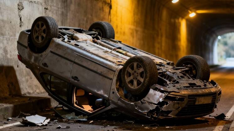 Водитель опрокинул автомобиль каршеринга на крышу в туннеле в Новосибирске
