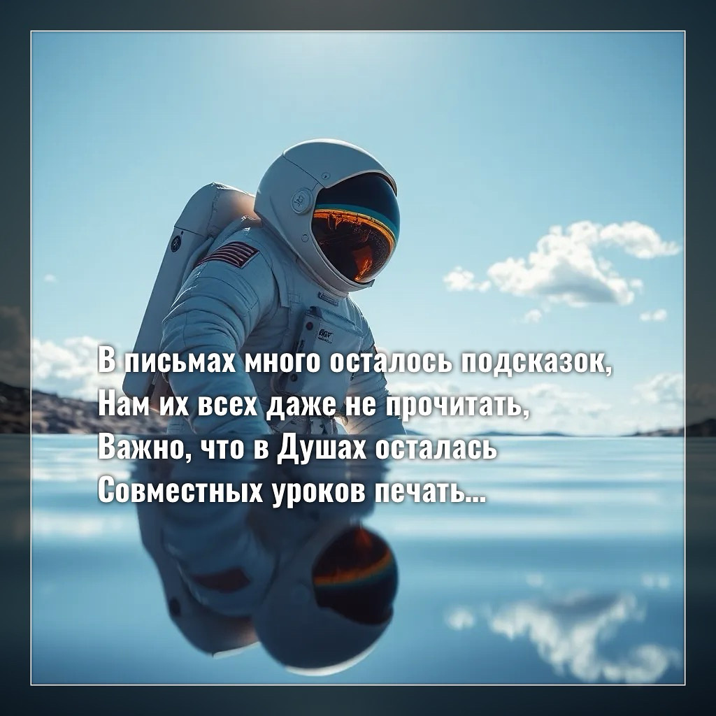 В письмах много осталось подсказок, Нам их всех даже не прочитать, Важно, что в Душах осталась Совместных уроков печать, Склеенная из любви, Прошитая нитями судеб, Всё равно никого роднее Здесь уже точно не будет, Счастлив тот, кто вспомнит это, В глазах все подсказки прочтет, Баал их закрыть мечтает, Но Бог нас опять спасёт, Тепло наших светлых сердец, Остановить не позволим Тем, кто мешает разрушить То, что так Бог долго «строил», Ни ты, ни я не потеряемся, Если ту нить не порвём, Что связывает нас с Богом, Пока вечным сном не уснём, Друг другу плечо подставляем В самых моментах сложных, Вспомнив, что всё в этой жизни Преодолеть возможно.