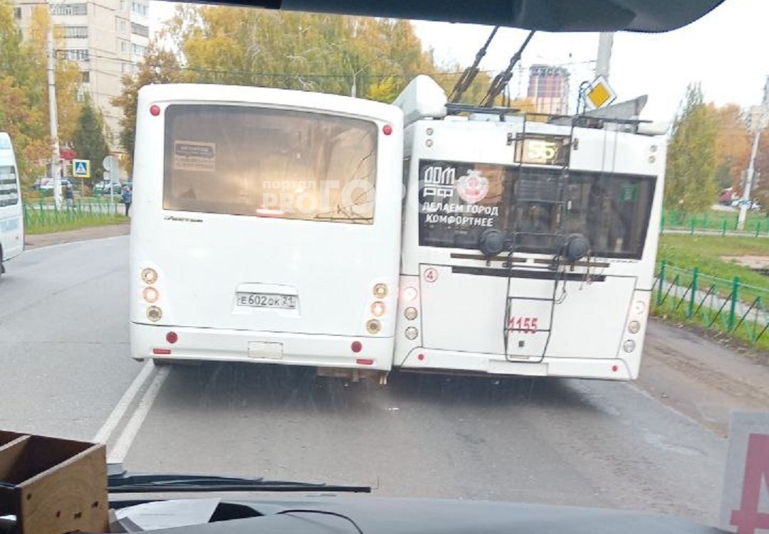 В Новочебоксарске 9 октября около 7:25 возле остановки Турист столкнулись служебный автобус и троллейбус №55