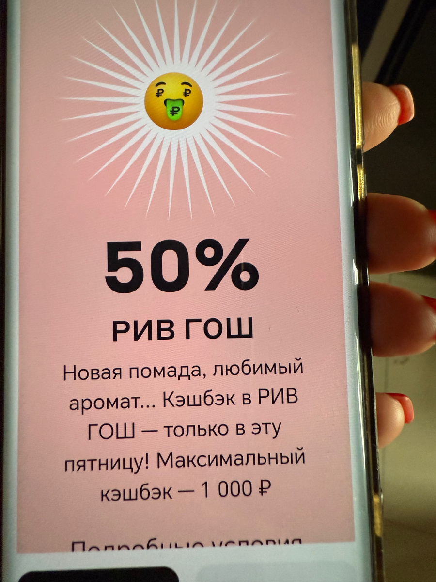 И вот сейчас снова интересное предложение! Кэшбэк на покупки в Рив Гош. Я выкрутила кэшбэк аж 50 % Теперь срочно составляю список нужного. Завтра вечером поеду в магазин, буду закупаться. Конец моему косметическому ноу шопингу)))