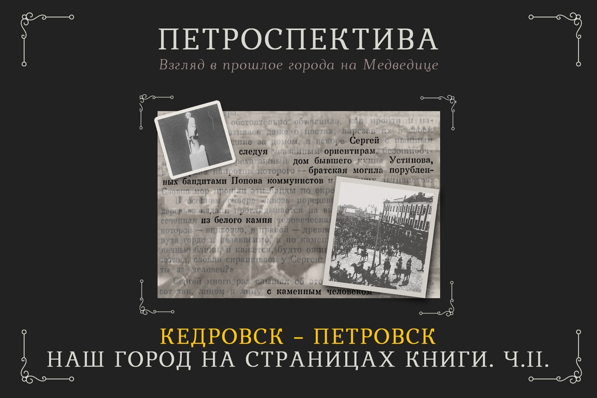 В предыдущей части публикации мы успели ознакомиться с аннотацией к книге, её автором, упоминанием некоторых знакомых нам по городу Петровску мест, которые на страницах книги существуют в некоем городе «Кедровске». Например - Железный мост через реку Медведицу, магазин «Кудрин» и школа на северо-восточной окраине города (бывшая школа №7).