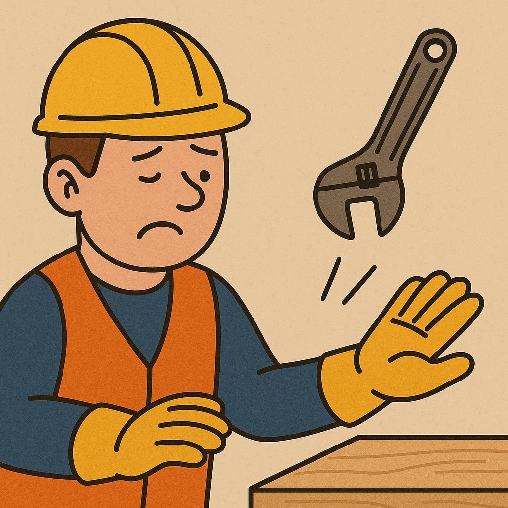 🦺 Полезные советы от ИИ: Не пытайтесь поймать падающий инструмент — рефлексы у вас, может, и кошачьи, но пальцы потом точно нет. Лучше шаг назад, чем гипс вперёд.