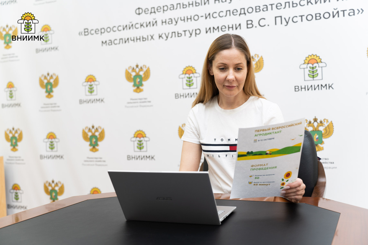 Сотрудники ВНИИМК активно подключились к проведению первого Всероссийского Агродиктанта, который проходит с 8 по 12 октября. Акция приурочена ко Дню работника сельского хозяйства и перерабатывающей промышленности. Молодые ученые ВНИИМК отвечали на вопросы по темам растениеводства и защиты растений, животноводства, цифровизации, экспорта, агротуризма, истории и обеспечения продовольственной безопасности. – Написание Агродиктанта поможет проверить свои знания, а также поддержать сферу, которая отвечает за продовольственную безопасность нашей страны. Присоединяйтесь к проекту и получайте новые эмоции! – поделилась впечатлениями старший научный сотрудник лаборатории селекции и семеноводства сои ВНИИМК Галина Михайловна Саенко. Акция проходит в 89 регионах России. Агродиктант поделен на четыре возрастные категории, в каждой из которых по 30 вопросов. На успешное прохождение дается 45 минут. Вопросы сгруппированы по 18 направлениям.