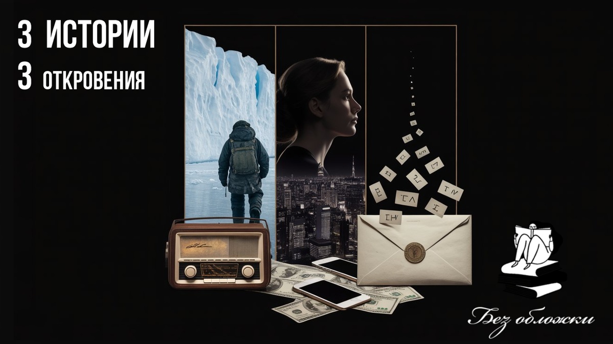 Уважаемые друзья, в этот раз мы не будем указывать рейтинг и определять какие рассказы на Дзен канале «Без обложки» были лучшими, а просто сделаем обзор. Это связано с тем, что не так много времени было на написание рассказов и в Сентябре мы усердно работали над записью аудио рассказов для нашего Youtube канала. Да, да, теперь многие из наших рассказов, вы можете прослушать в аудио формате, перейдя на наш Youtube канал. Если вам такой формат прийдется по душе и понравиться озвучка, то будем признательны за вашу поддержку и активность: подписки, лайки комментарии. Ну а вот собственно аннотации к рассказам за Сентябрь... В бескрайних льдах Антарктиды, где единственными спутниками исследователя остаются ветер и одиночество, Дмитрий случайно ловит в эфире женский голос. Анна говорит, что передает из-за ледяного барьера — из места, которого нет на картах, из мира вечного лета и неземных технологий. Невозможная встреча двух миров перерастает в невозможную любовь. Каждую ночь радиоволны соеди