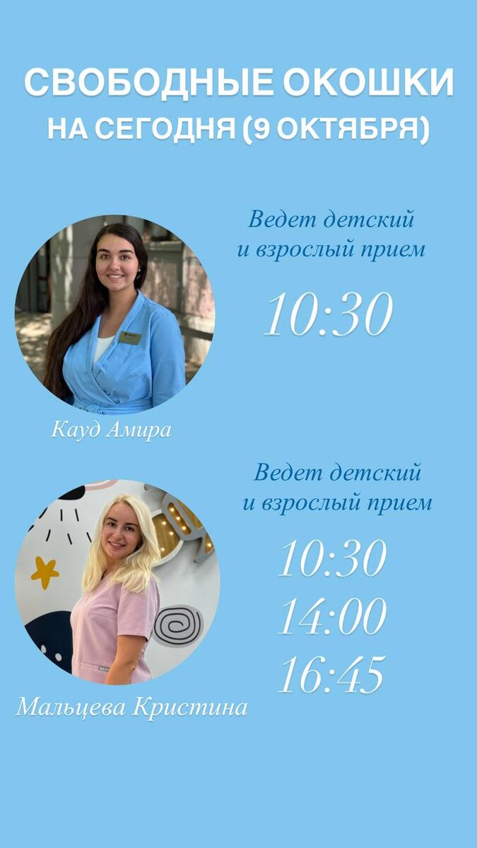На сегодня есть свободные окошки к врачу-ортодонту и врачу-стоматологу 🙌🏻