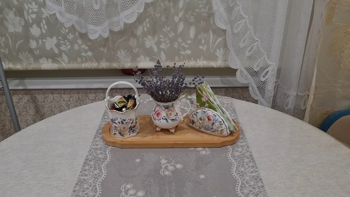 Добрый день всем заглянувшим на мой канал! Видео можно посмотреть здесь: Мы недавно переехали с дачи в квартиру, на кухне у меня летний декор и хочется поменять на осенний. На кухонный стол постелила дорожку в осеннем стиле. Принесла с дачи букет из астры осенней, поставила в керамическую баночку с тыквами. Мне нравится. Ещё есть керамическая сахарница с тыквами и ложкой, тоже её поставлю рядом. А также есть керамическая маслёнка , тоже с тыквами. Салфетница тоже в таком же осеннем стиле. Мне понравился как смотрится мой осенний декор. На ужин у нас мясо по французски, такой аромат. Пирожные принесла родственница, у неё очень вкусно получается и торты тоже вкусные печёт. Цветут Орхидеи Розовая заложила много бутонов. Принесла с дачи букет сухоцветов из лаванды. Включила вечером камин. На камине подсвечник клетка с птичками. Люблю свечи ароматизированные, у меня их много. Это была свеча, её сожгли и получилась шкатулка для бижутерии. Свеча с шикарным ароматом малины. Свеча с аромато