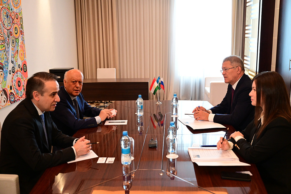 Глава Башкирии Радий Хабиров, находясь с визитом в Душанбе, встретился с директором агентства по государственным материальным резервам при правительстве Таджикистана Нурмахмадом Ахмадзодой.