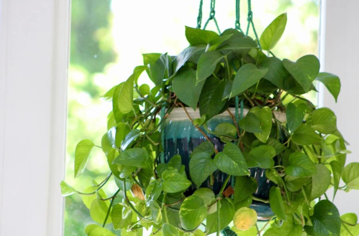 Эпипремнум золотистый классическое растение из серии "посадил и забыл". Эти растения могут вырасти на несколько метров всего за несколько месяцев. Всё, что им нужно, яркий рассеянный свет и немного воды, когда верхний слой почвы высыхает. Бонус их невероятно легко размножать черенками в воде.