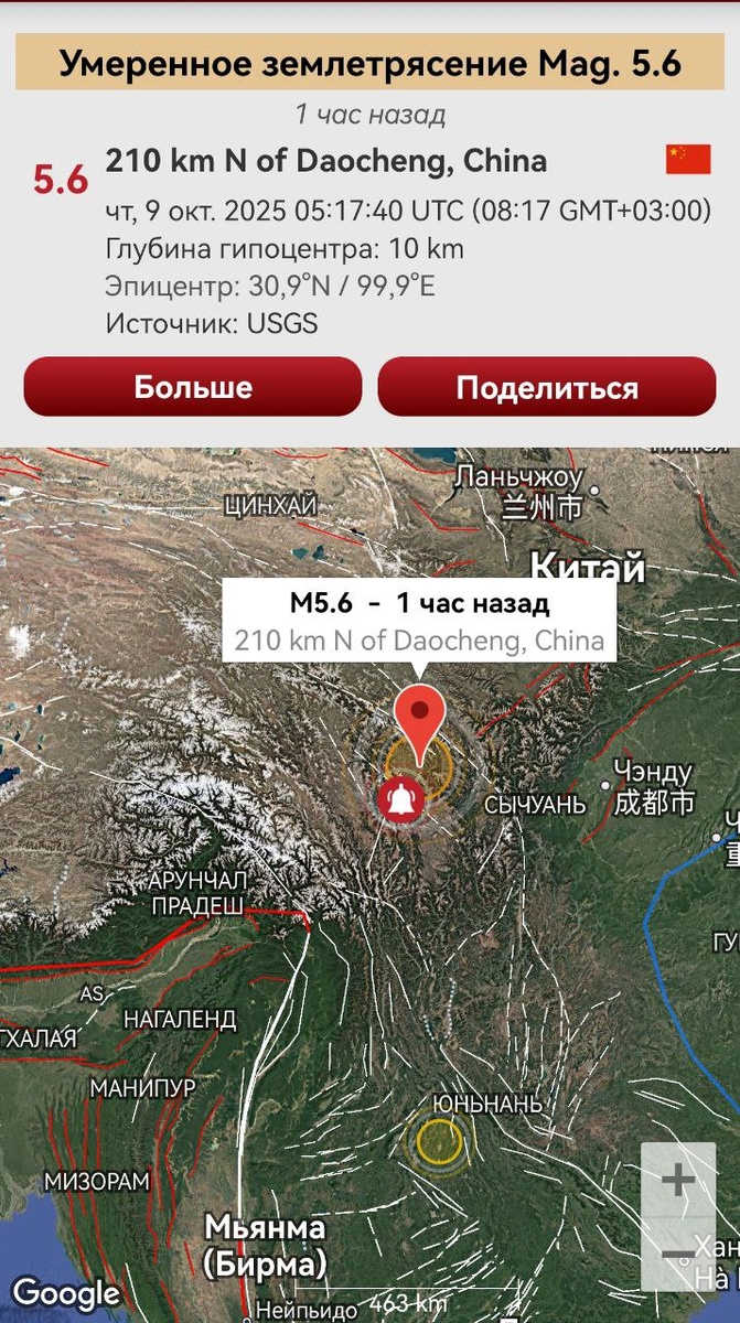 В ответ на пост Отработал Китай умеренным событием М5.6 через 2 дня после предупреждения