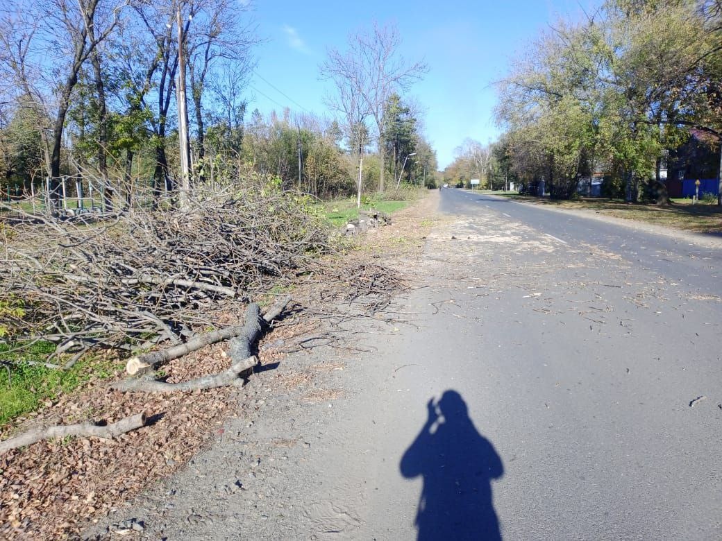 А это Лесозаводск. Спил молодых деревьев возле второй школы.