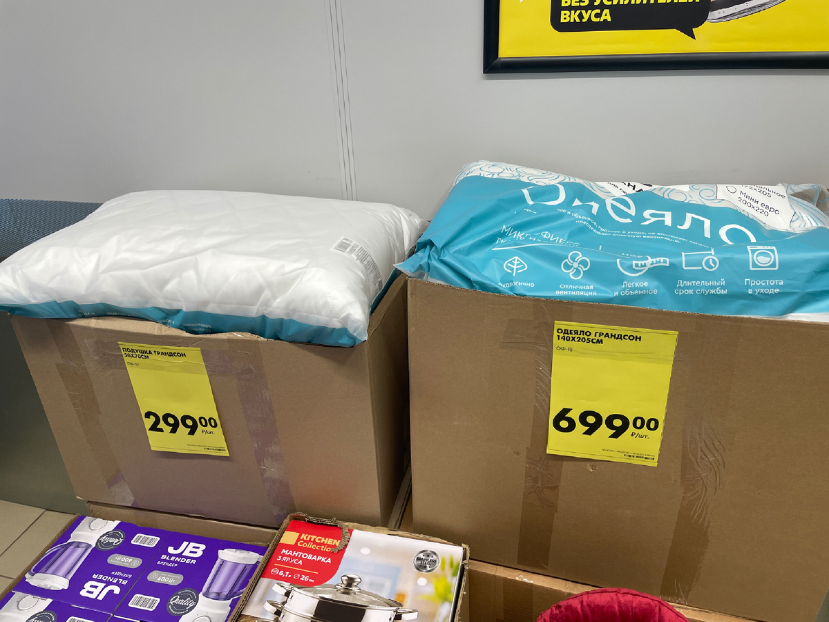 Всем чудесного теплого денечка! Забежала перед работой в Чижик, чтобы снять для вас новинки. Вот что получилось найти! Подушки и одеяла, если вам необходимо обновить. Хорошенькие подушки, но очень маленькие, цена 349₽. Мантоварки 6,1 л. из нержавеющей стали. Электрический блендер 1,5 л., мощность 600 Вт. Набор контейнеров 1 л. и 0,5 л., цена 169₽. Кружки из керамики 99₽. Этажерка диаметром 25 см., высота 17 см. Набор универсальных крышек 299₽. Сковорода 799₽, 22 см., для всех плит. Подвесная корзина 299₽, 39*25*14 см. Корзина 31*21*14 см., 249₽. Столики-подносы 799₽. Органайзер для мелочей 399₽. Вешалка на дверь для обуви 1499₽. Сомнительная какая-то идея, а вы что думаете? Размер 54*21*151 см. Белая полка парящая 60*23,5*3,5 см., 699₽. Плед 130*160 см., 999₽. Штора ОДНА 140*260 см., 999₽. Беспроводной автомобильный пылесос 1299₽. Геймпад беспроводной 1599₽. Термосумки 399₽. Маленькие машинки 99₽. Фигурка 199₽. Машинки 199₽. Животные-трансформеры 299₽. Пучеглазики- антистресс 99₽. Н